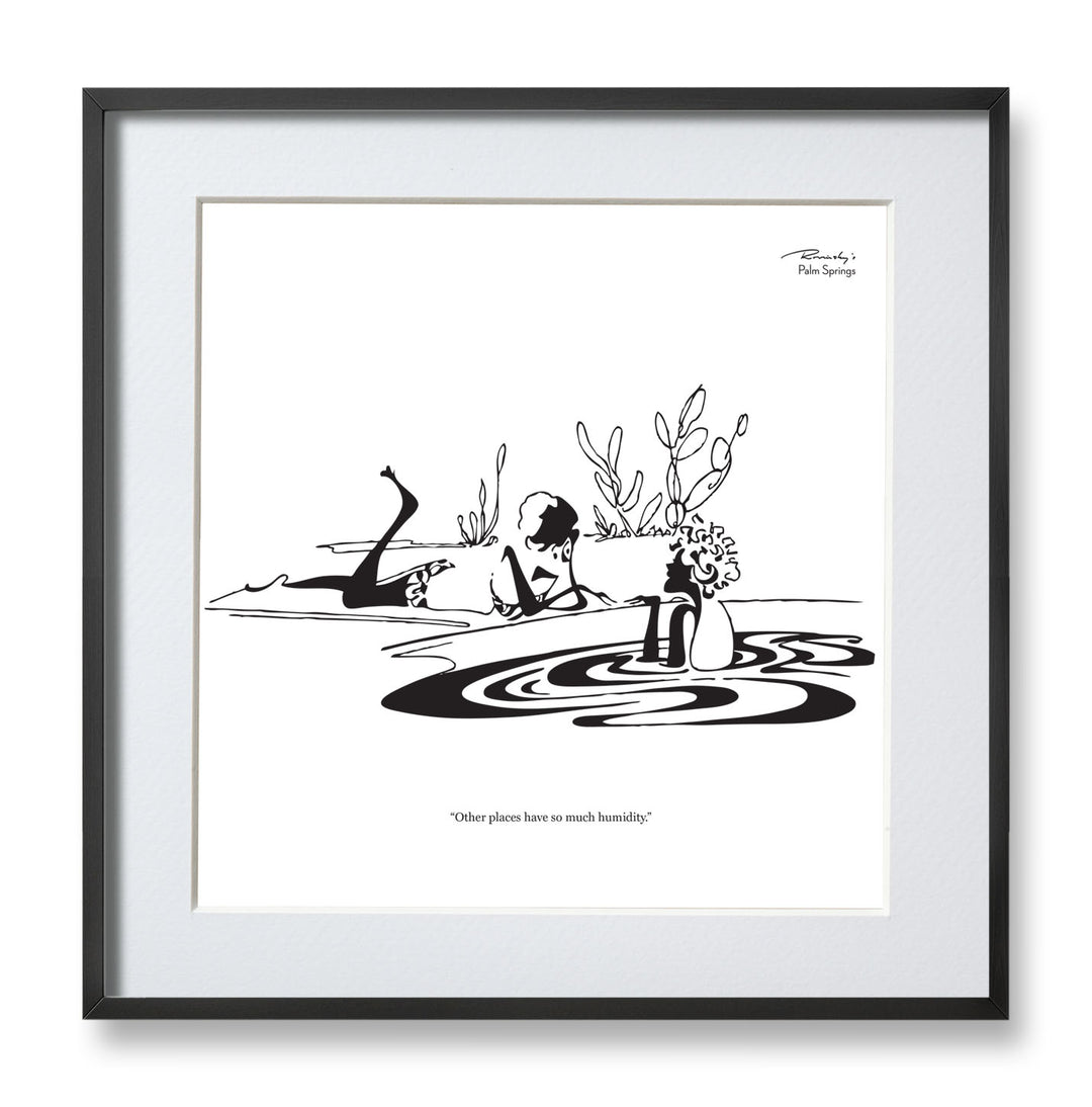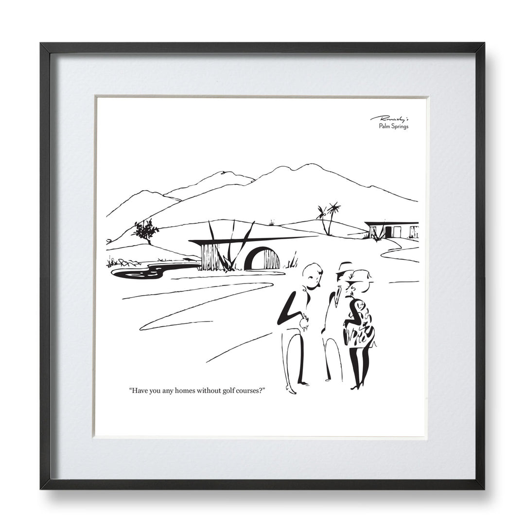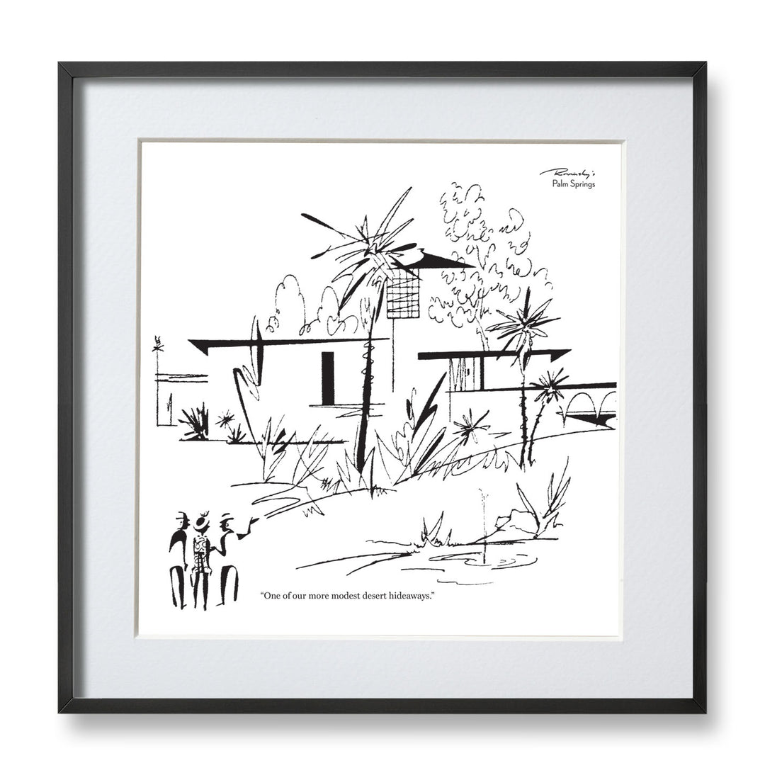 Alice Rovinsky created Rovinsky's Palm Springs, a series of topical cartoons that appeared in Palm Springs Life in the late 1960s and '70s. Sophisticated, witty and always entertaining, the popular cartoons captured the modernist spirit of the Palm Springs resort community and found humor in its lifestyle and social scene. Her drawings are simple and specific with an insightful eye to each stroke.