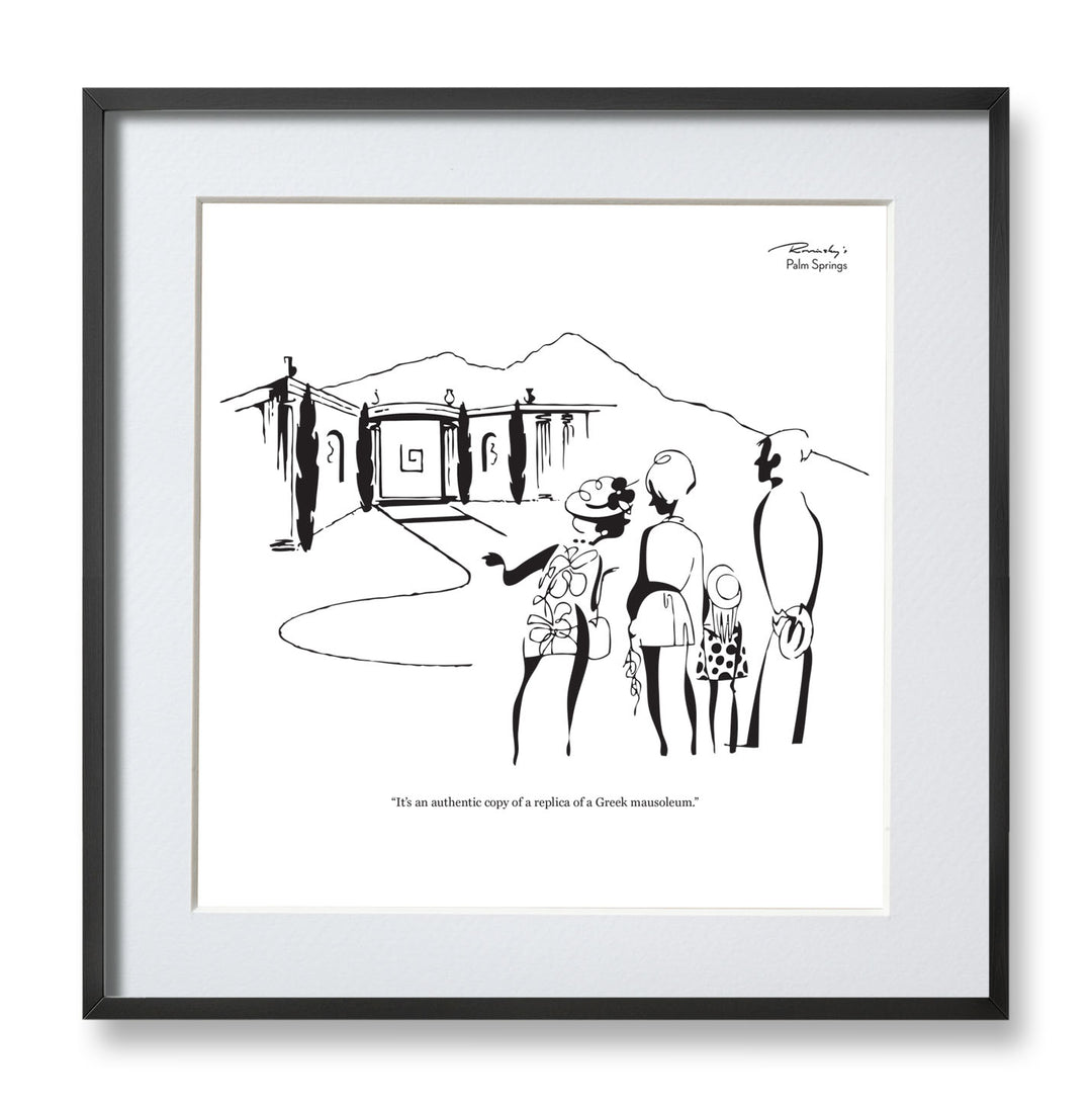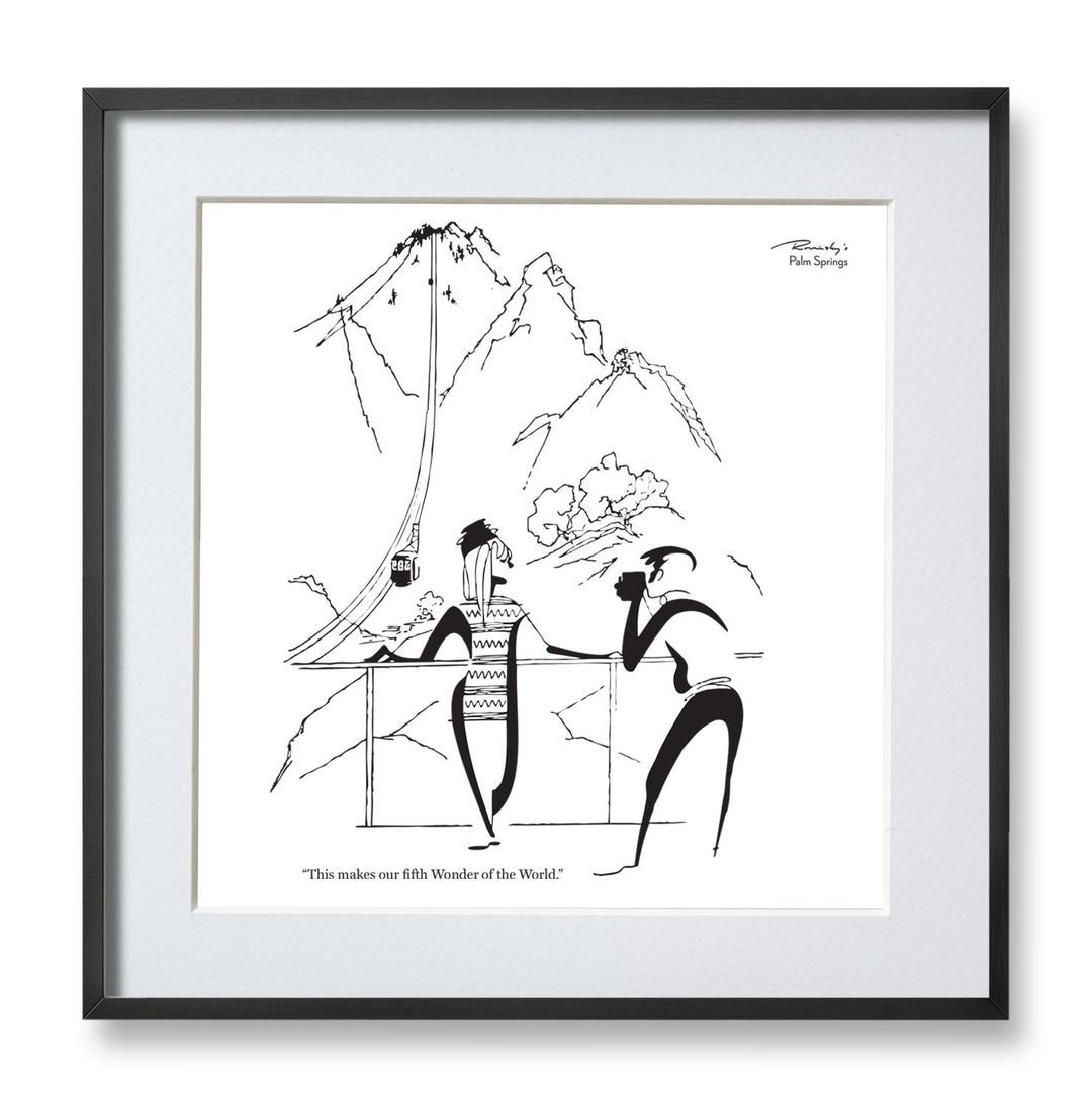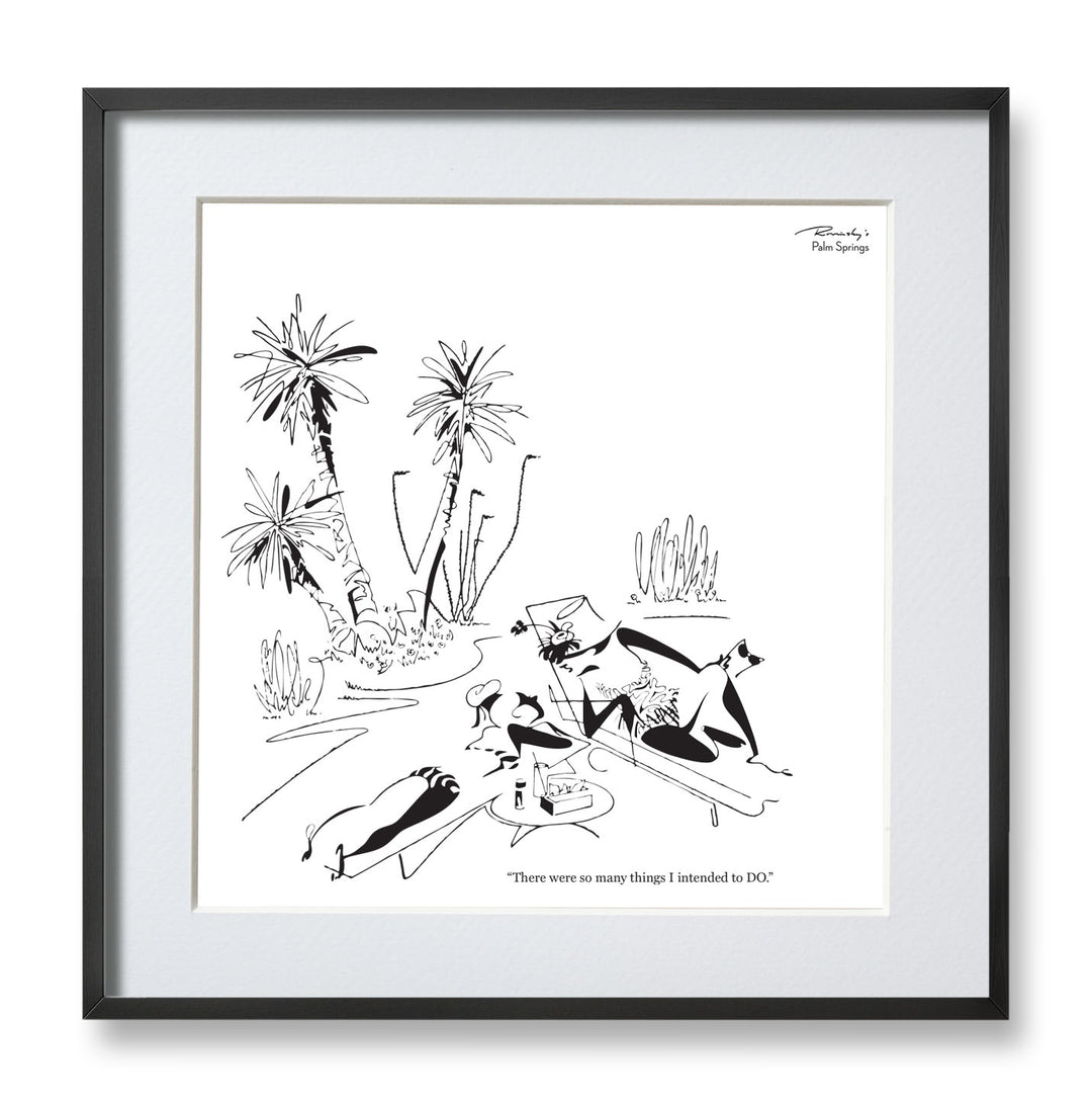 Alice Rovinsky created Rovinsky's Palm Springs, a series of topical cartoons that appeared in Palm Springs Life in the late 1960s and '70s. Sophisticated, witty and always entertaining, the popular cartoons captured the modernist spirit of the Palm Springs resort community and found humor in its lifestyle and social scene. Her drawings are simple and specific with an insightful eye to each stroke.